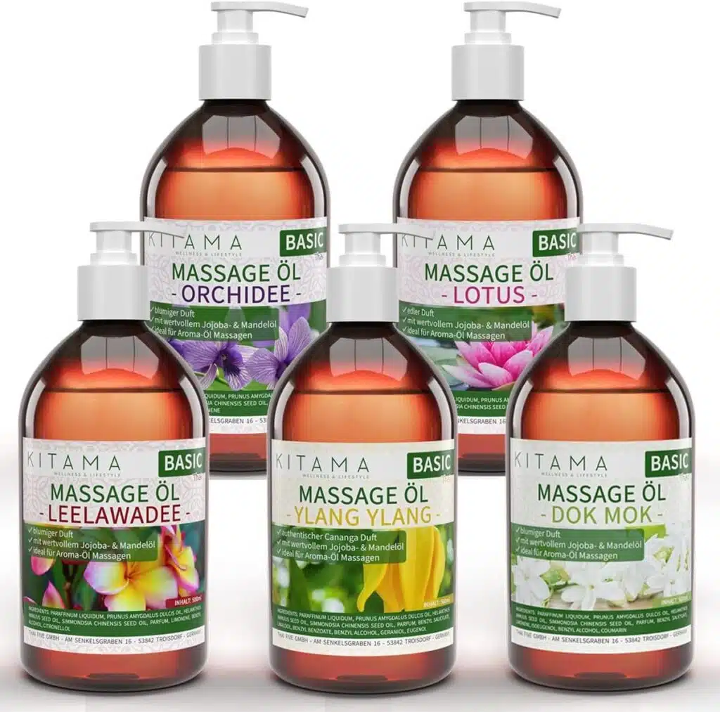 Aceite de masaje tailandés con ingredientes naturales: Este aceite contiene una mezcla de hierbas tailandesas que potencian la relajación y alivian el dolor muscular. Lo uso regularmente para auto-masajes o en sesiones con mi terapeuta. La sensación de alivio y bienestar es instantánea, y su aroma exótico transporta a un estado de calma y serenidad.